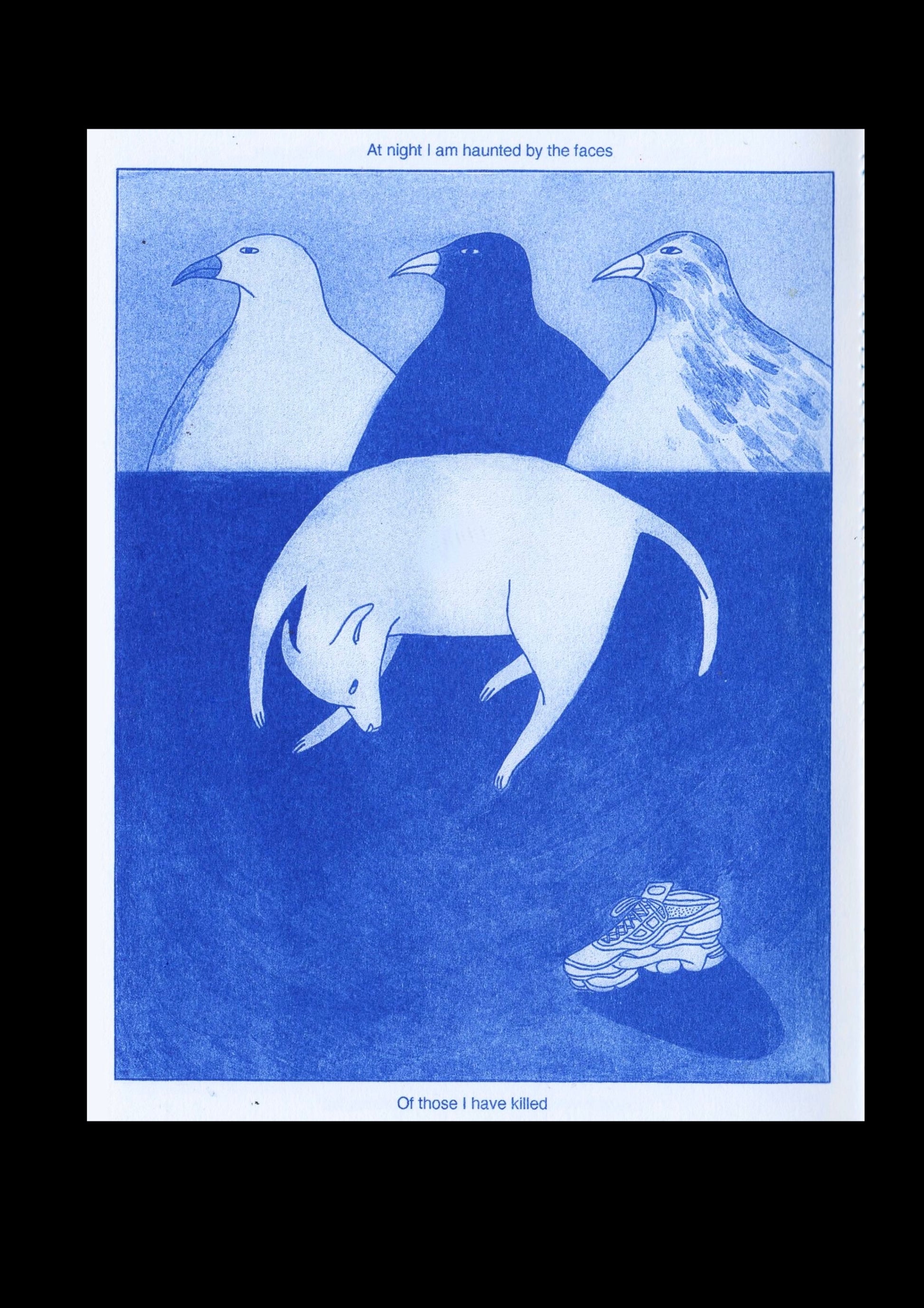 A4 blue risograph print. Limited edition of 100, signed and numbered.
